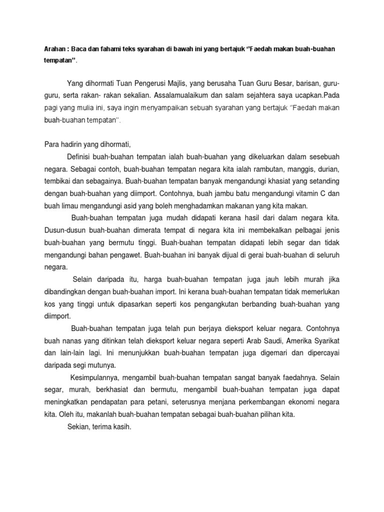 Contoh Contoh Karangan Sekolah Rendah Fakta Kebaikan Buah Buahan Tempatan Pdf